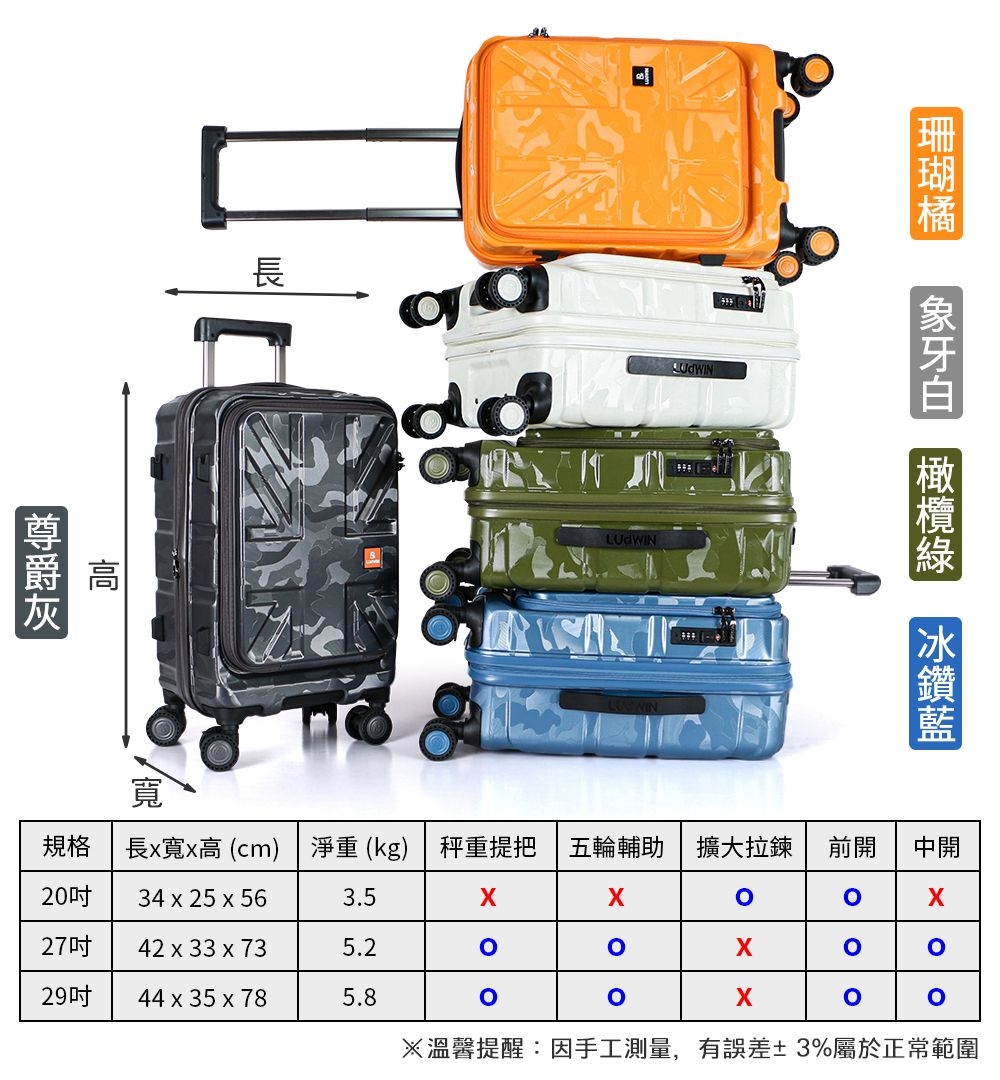 【LUDWIN 路德威】英倫皇家前開胖胖箱-20吋/27吋/29吋